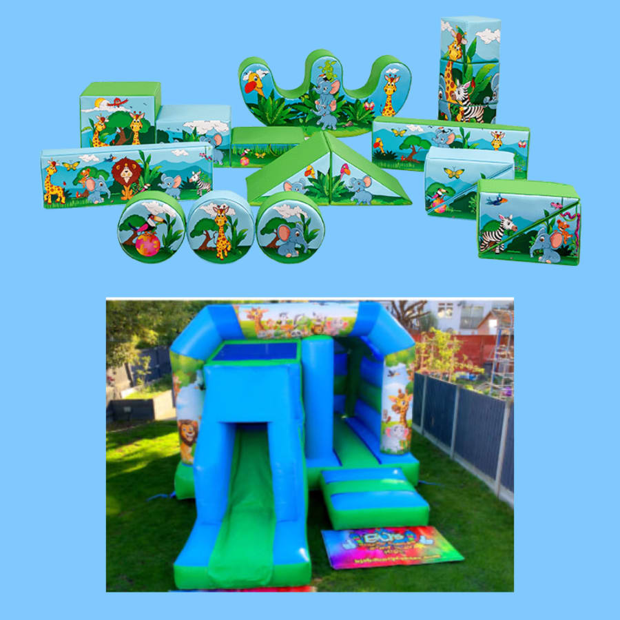 - 1 x Choice of bounce and slide OR tots slide with jungle artwork