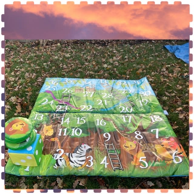 Whether it's indoors or out doors this real to life traditional board game will keep the family occupied. Always allow 2ft extra in size area. See our themed Unicorns Snakes and Ladders and Our Original Snakes and Ladders.