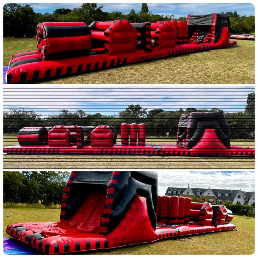 Are you ready to take on an exhilarating challenge? Our Endurance Conflict Assault Course, designed in striking red and black, is now available for hire in Orpington, Sevenoaks, Beckenham, Blackheath, Bexleyheath, and Dartford. Specially crafted to provide a thrilling experience, this inflatable obstacle course is perfect for kids, families, and adults alike. 🎉