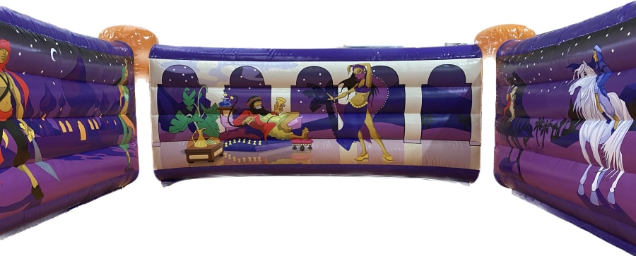 Add a dash of exotic magic to your party with our Arabian Nights Bouncy Castle, the perfect inflatable for family events, birthday parties, and themed celebrations. With a striking design and a low height of just 8.5ft, it fits easily into halls and venues with lower ceilings—ideal for indoor events in areas like Bromley, Bexleyheath, and Croydon.