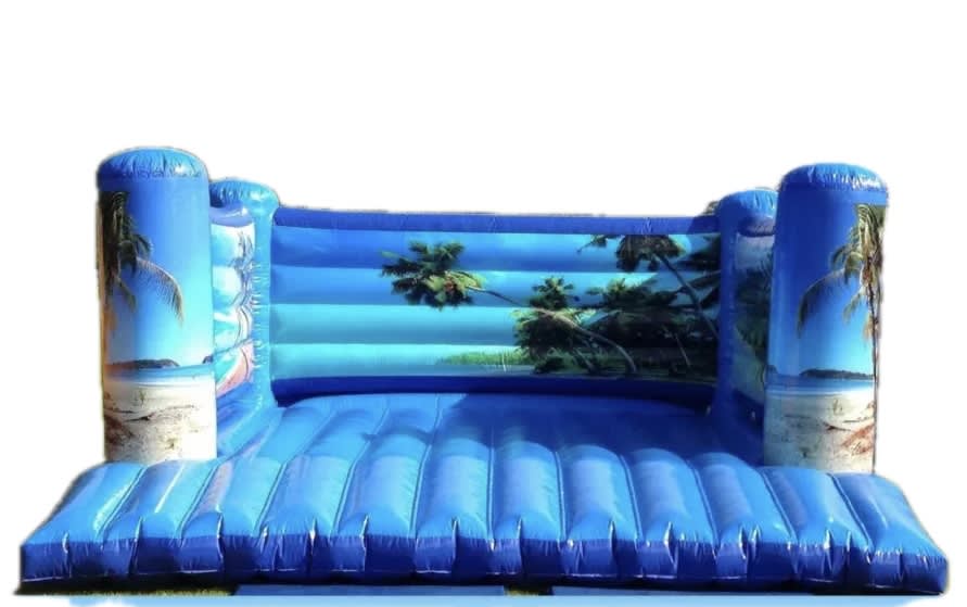 The Caribbean Island Family Bouncy Castle offers a splash of sunshine for any event, with vibrant tropical graphics and a generous play space measuring 18ft wide by 21ft long.
