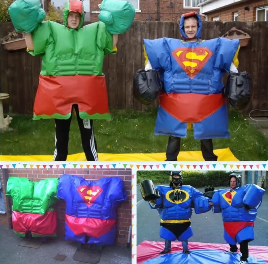 Our Superheroes Sumo Wrestling Suits provide a unique and hilarious experience for all participants. With vibrant Hulk and Superman designs, these suits are ideal for birthdays, corporate team-building events, school fetes, or a fun-filled afternoon with friends. Engage in a sumo-style wrestling match that guarantees laughter and unforgettable memories. 🤼‍♂️