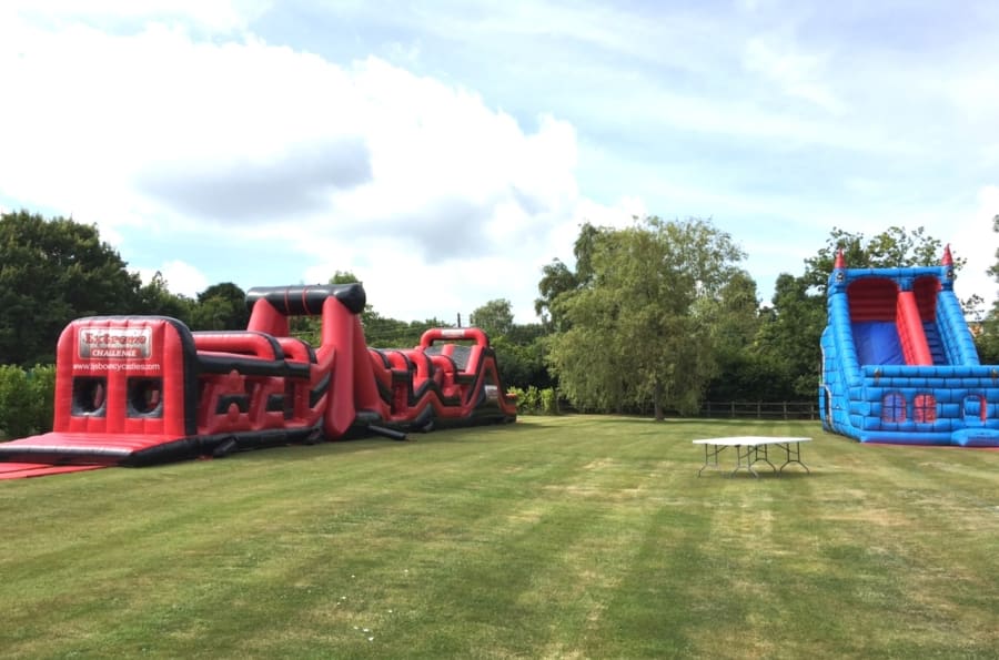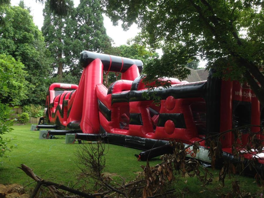 If this is the case then please try our extended Lightning assault course, can go up to 48 metres and will fit down most standard side walks/entrances to the gardens. See our Assault Course Hire page.