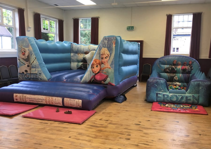 Ideal for small birthdays, nurseries and family events. We provide frozen soft play hire in Woldingham, Carshalton, Mottingham, Erith, Downham, Bickley. This themed set keeps little ones engaged with soft shapes, a ball pond and a choice of bouncy castle. Soft, colourful and designed for baby and toddler development.