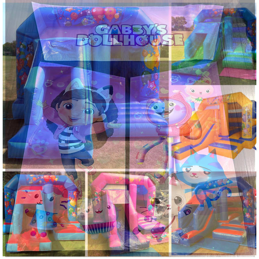 Bouncy castle hire Gabby's Doll House Bounce & Slide in. Bring colourful excitement to birthdays and playdates with our Gabby's Doll House Bounce & Slides. Perfect for children aged 10 and under, this inflatable combo delivers a safe, energetic play zone that keeps kids laughing and active. ๐๐ฑ