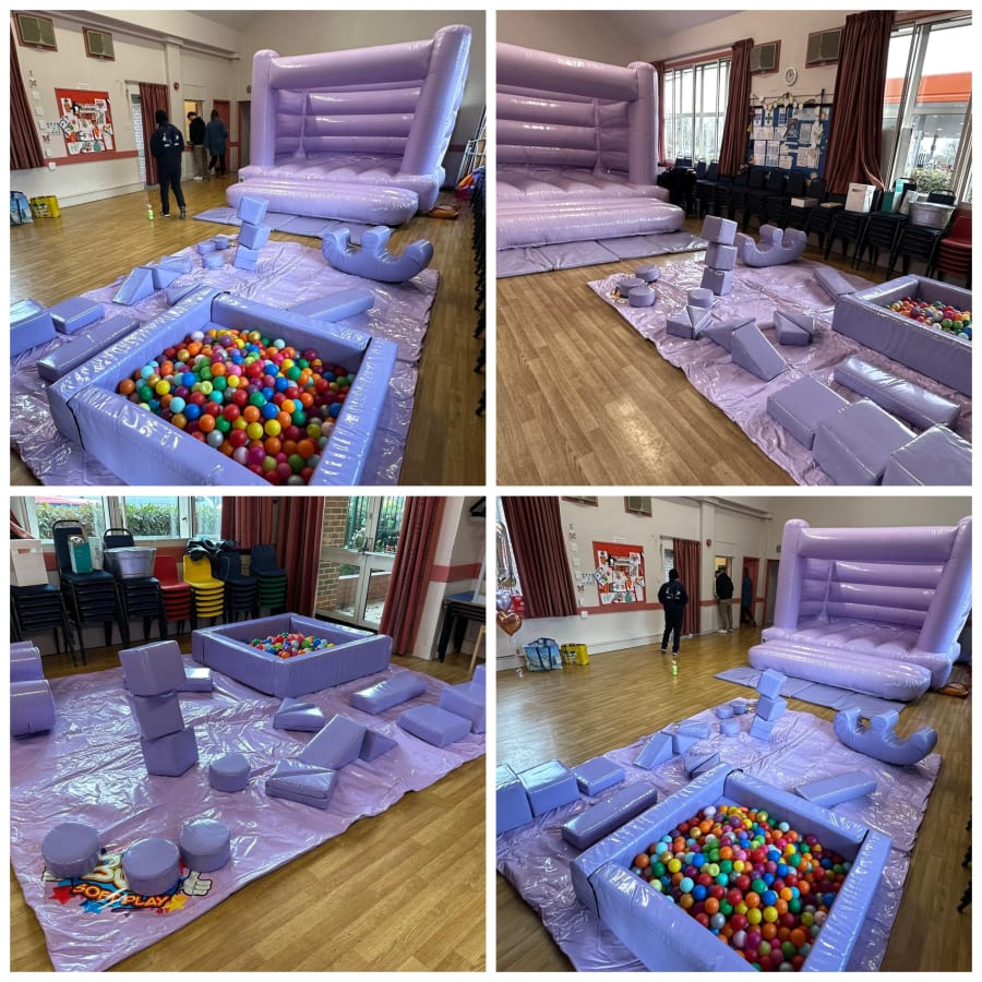 Pastel lilac soft play package with a ball pond and a choice of castle