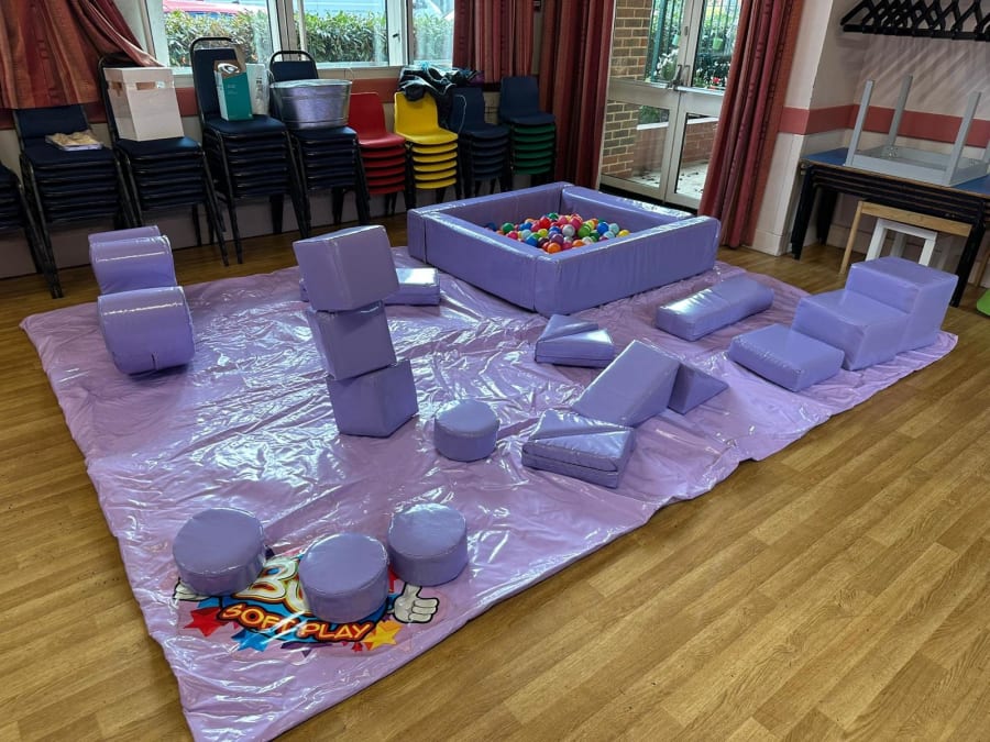 - 18 x Pastel lilac soft play shapes – cubes, squares, triangles, rectangles and circles.