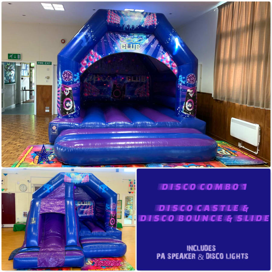 Turn any event into a disco party with the Disco Club Combo. Two disco bouncy castles, booming sound and vibrant lights make this package perfect for family fun and kids’ birthdays.