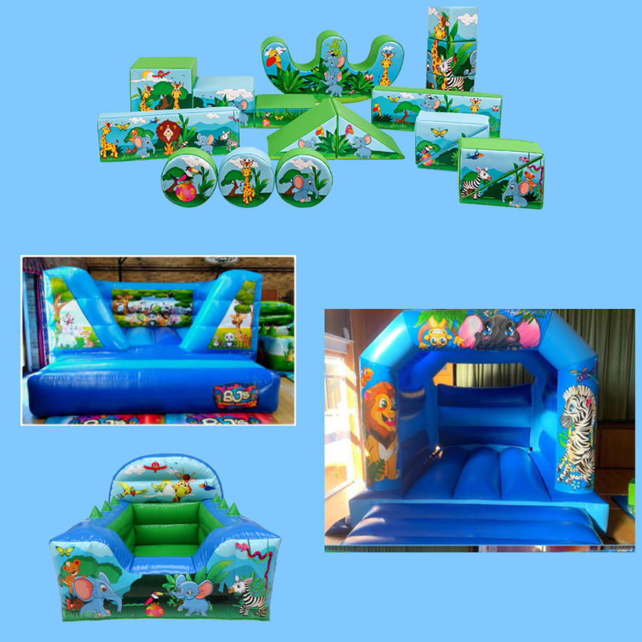 - 1 Choice of bouncy castle with vibrant jungle artwork. Choose from various sizes to fit your space perfectly.