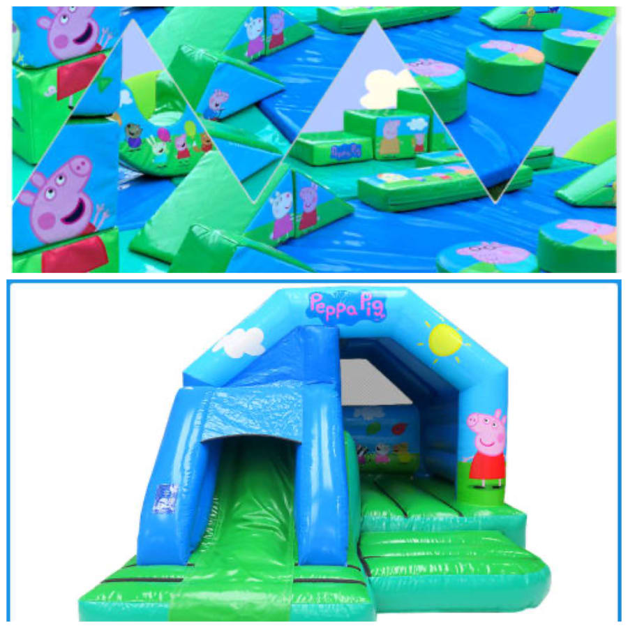 - 1 x Peppa Pig green bounce and slide (12.5ft W x 16ft L x 9.5ft H).