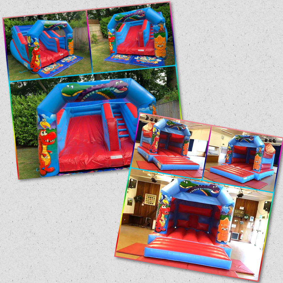 Dino bouncy castle and tots slide package (or choice of bounce and slide)