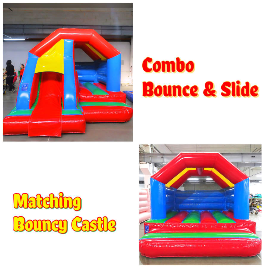 Colourful Matching Bounce & Slide and Bouncy Castle Combo Package