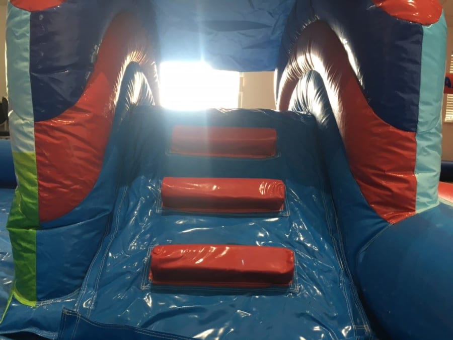 • Comes with a built in ball pond with balls supplied - A small up and over Slide - Air Jugglers - also comes with this really smart idea - it also has a small built in bouncy castle